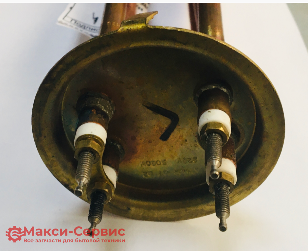Медный двойной тэн-скрепка для проточного водонагревателя Атмор, 4 контакта, круглый фланец диаметром 65 мм